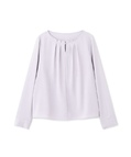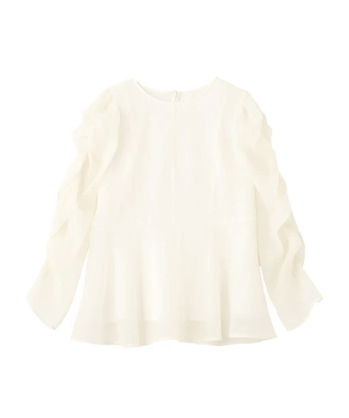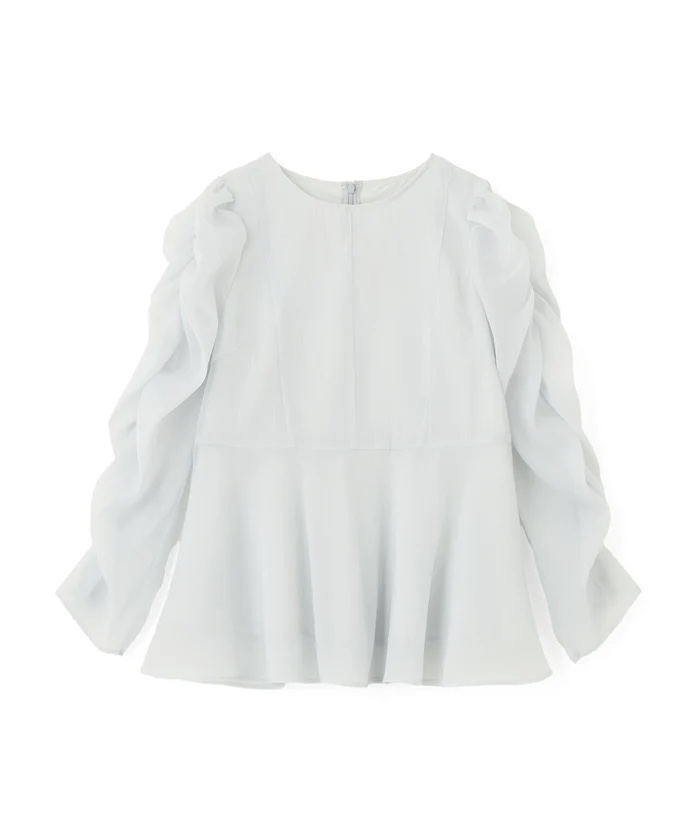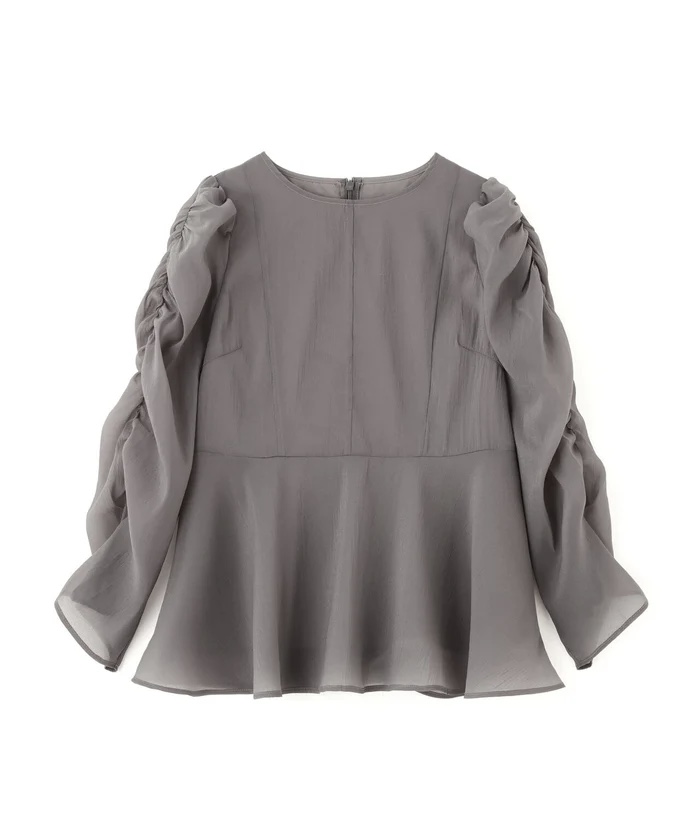 毎年人気のブラウスが春カラーになって再登場!早い時期から着られる袖丈にし、袖山に入れたギャザーのボリューム感を調節して、着映え感と着やすさを両立したデザインです。ONにもOFFスタイルにも使いやすい、品のあるペプラムシルエットを演出します♪