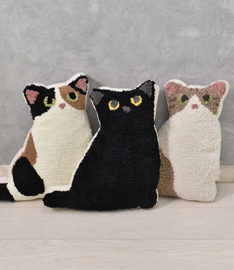 ネコ好きさんにはたまらないもふもふダイカットクッション。