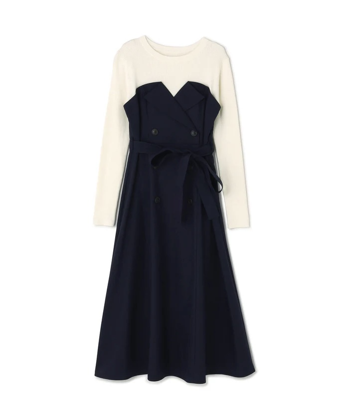 上身頃はハイゲージリブニット、ワンピース部分はキレイめツイル素材を使用しています。