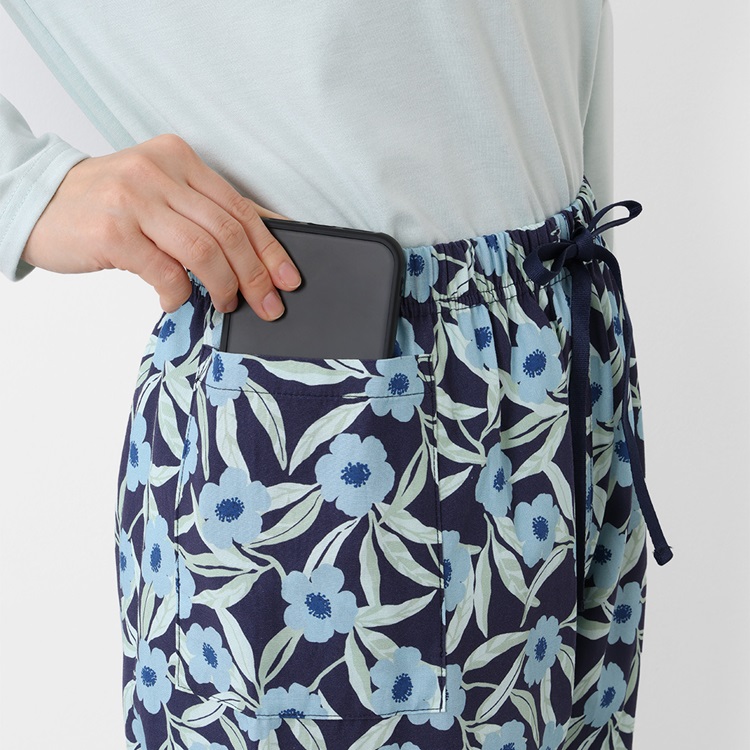 パンツは華やかな花柄が気分を明るくし柔らかく軽やかな生地で快適な履き心地 気分も上がります。