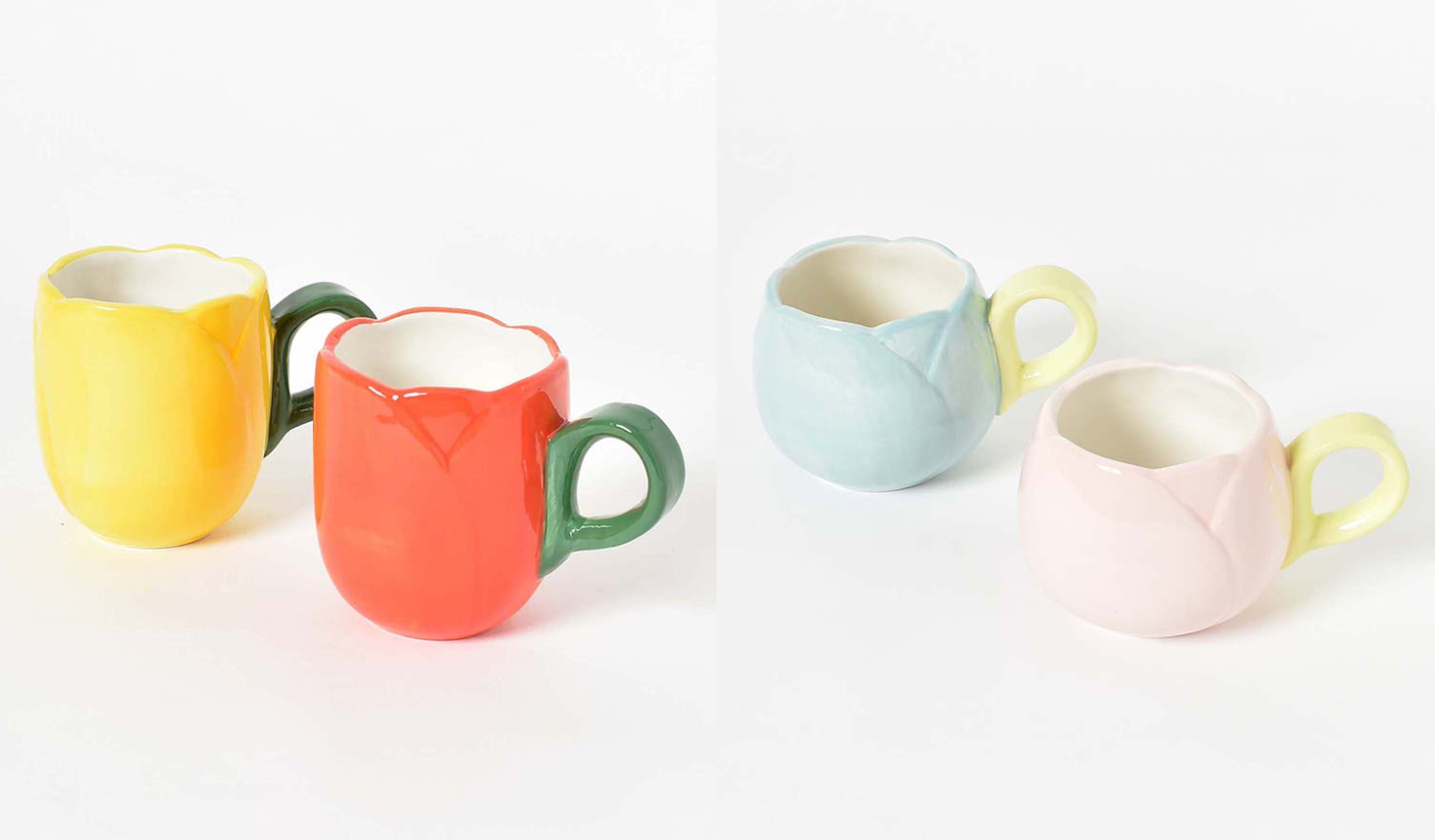 ころんとしたチューリップのマグカップ。春らしいカラーがゆったりとしたティータイムにぴったり。ギフトにもおすすめ◎