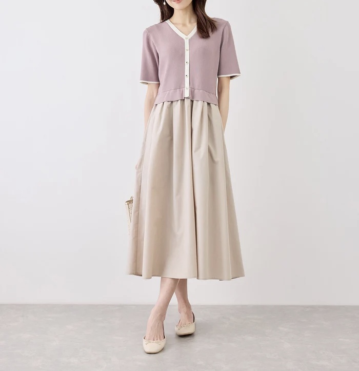 時短でおしゃれが完成!異素材使いのドッキングワンピース。