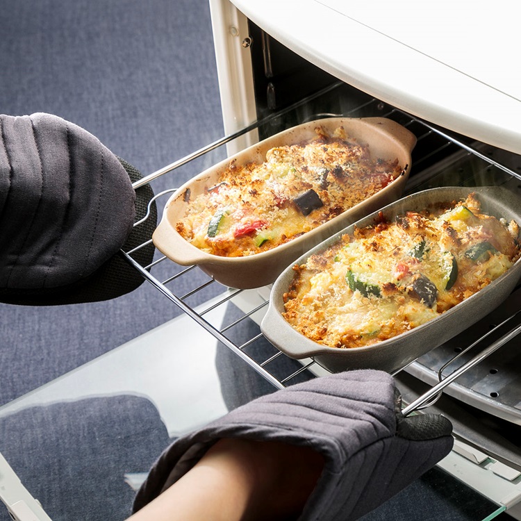 手のひら側に耐熱ゴム製の滑り止めが付いているので、天板や鍋を安定して掴むことができます。