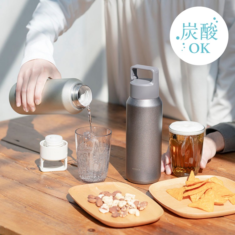 フタを開けるときにカチッと内圧を逃がす構造で、中身に炭酸を入れることができるステンレスボトルです。もちろんビールもOK。内側はセラミック加工で仕上げているので、汚れ落ちもよく、飲み物の風味そのものを楽しめる仕上がりです。