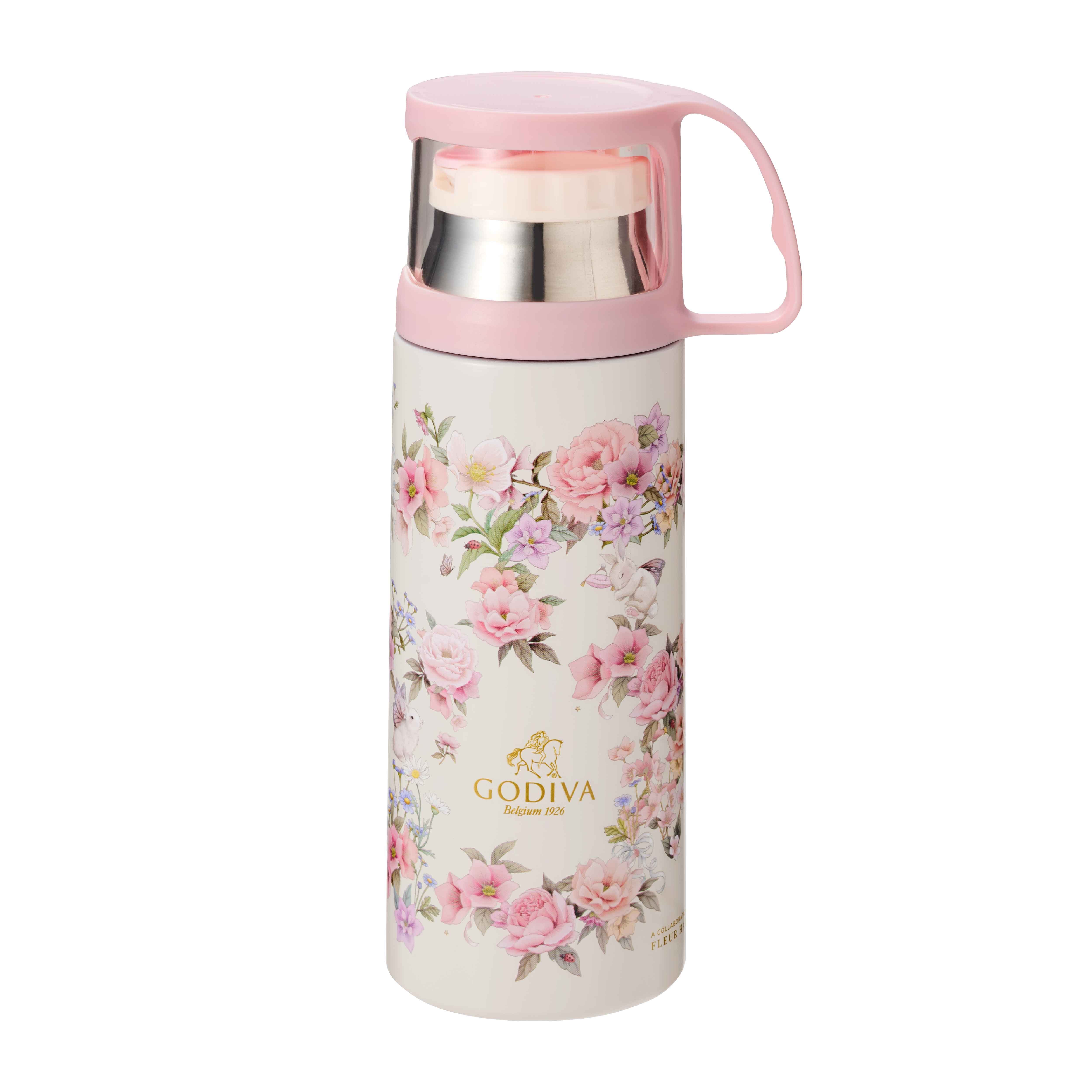 春らしい色とりどりの花を表現したフラワー形のパッケージの心躍るチョコレートの詰め合わせと、オリジナルデザインのステンレスボトルをセットにしました。