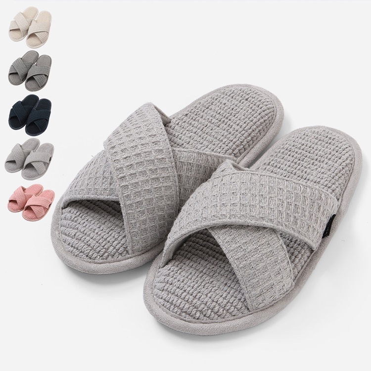中に厚さ10mmのクッションを入れているため、ふわりとした履き心地。さっくり織り上げたインド綿の凹凸が足裏に気持ちいいスリッパです。甲もやわらかに仕上げているのでフィット感も◎。