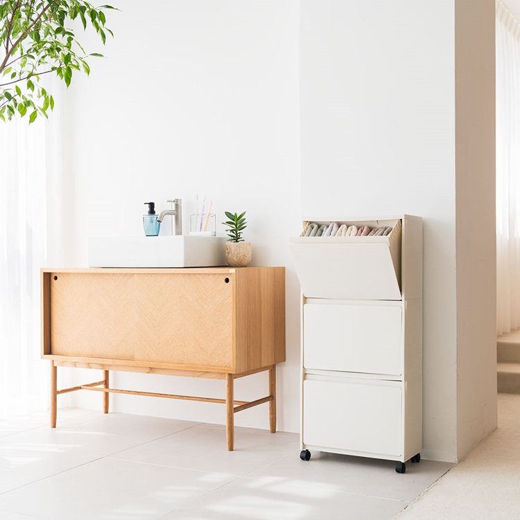 キッチン・お風呂場など、様々な場所で活躍する薄型の3段ボックスです。