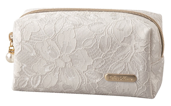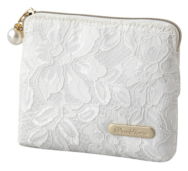 レース柄のコンパクトポーチ。ポケットティッシュがぴったりな程よいサイズ感で持ち歩きに便利です。