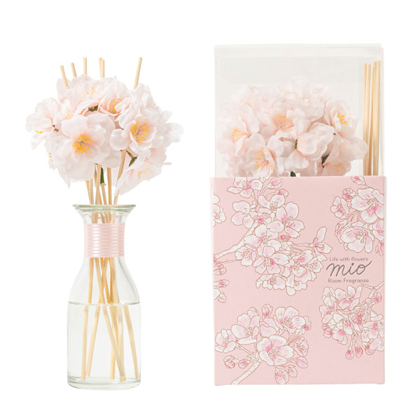 本物のような桜の造花を使ったリードディフューザー。お部屋で春気分を味わえる。芳香期間は約2ヶ月。