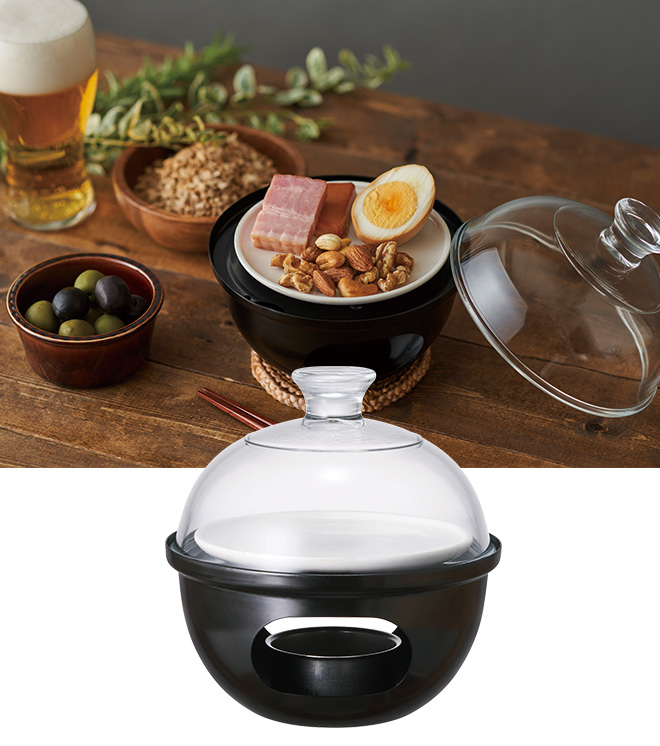 固形燃料が燻製チップを加熱し、煙を閉じ込めて燻製が完成。レシピ付きでコンパクトサイズなのもうれしい。オンライン飲み会にもおすすめ。
