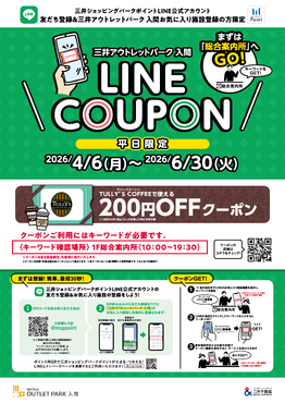 【4/6(月)~6/30(火)平日限定】LINEクーポンプレゼント!TULLY'S COFFEEで使える200円OFF