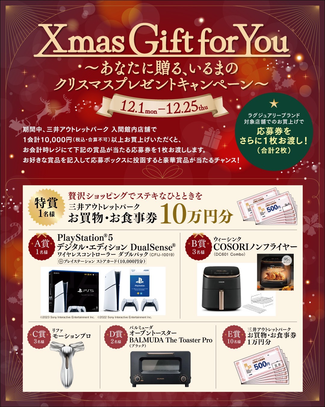 三井アウトレットパーク 入間では、12/1(月)~12/25(木)の期間にて