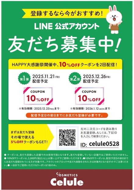 | ブランドコンセプト | 「アウトレットコスメ」って素敵! 超お買得の「アウトレットコスメ」が、メーカーの枠を超えて「セルレ」に集まりました。 ・メーカーがたくさん作りすぎてしまったもの ・色番が、半端になってしまったもの ・パッケージをリニューアルした いろいろあるけれど、中身はパーフェクトで安いです。 ぜひ「セルレ」のお店で、お安くあなたのとっておきを見つけてください。 |