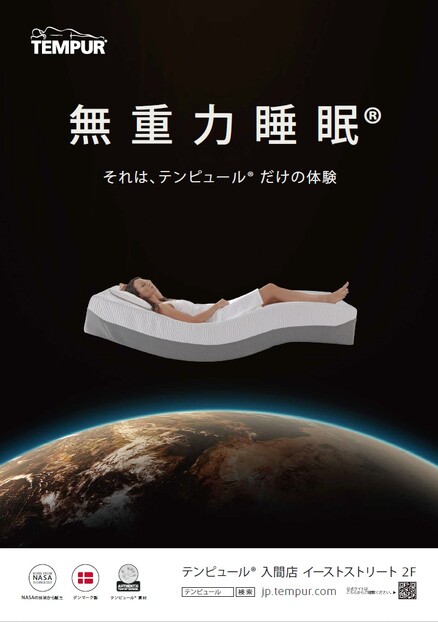 NASAの技術から誕生したテンピュール®素材は、優れた体圧分散性で、まるで宙に浮かぶような「無重力睡眠®」を実現します。