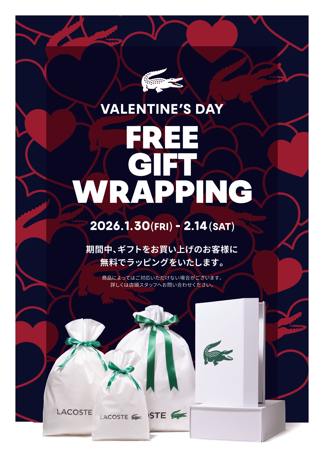 2026. 1.30.(FRI) ~2.14(SAT)期間中、ギフトをお買い上げのお客様に無料でラッピングをいたします!!
