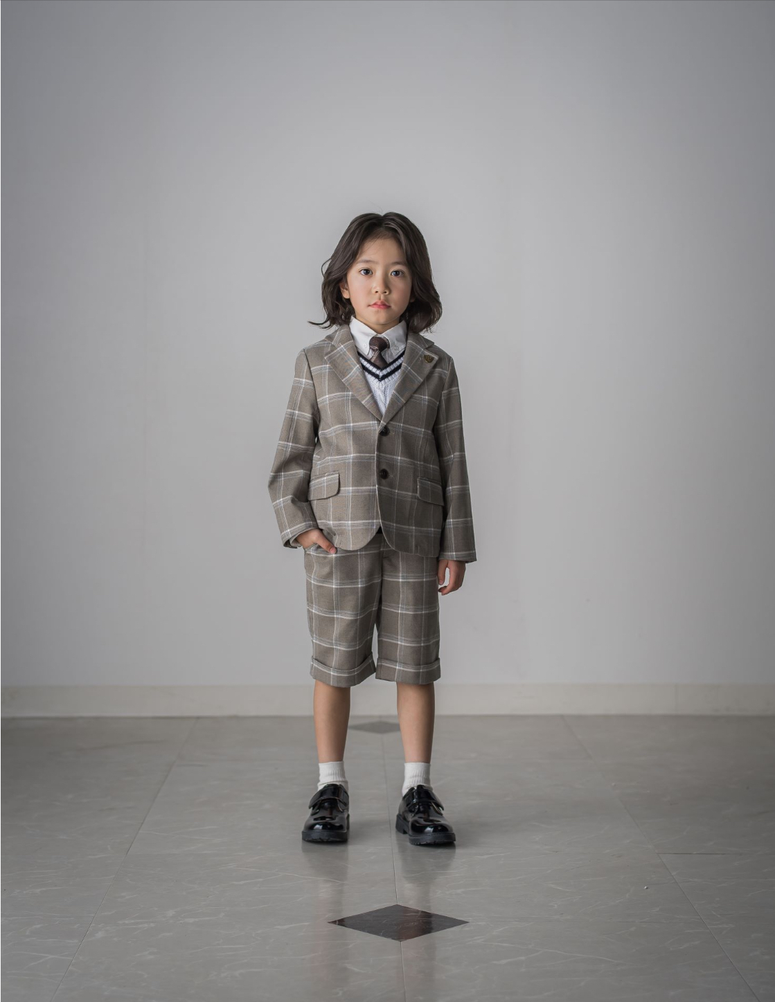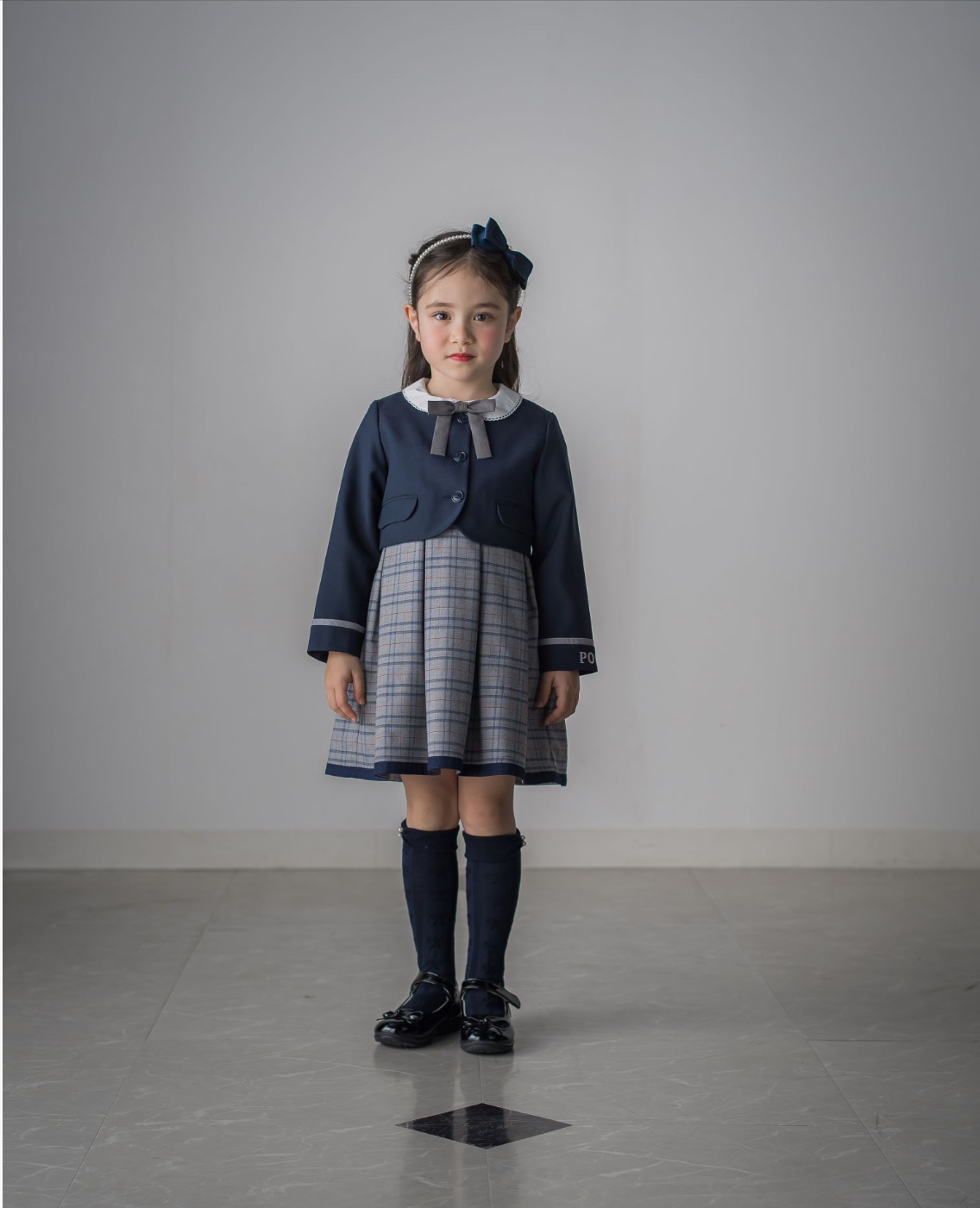 袖切り替えジャケット、襟リボン付きチェックワンピースセット 13,200円(税込)