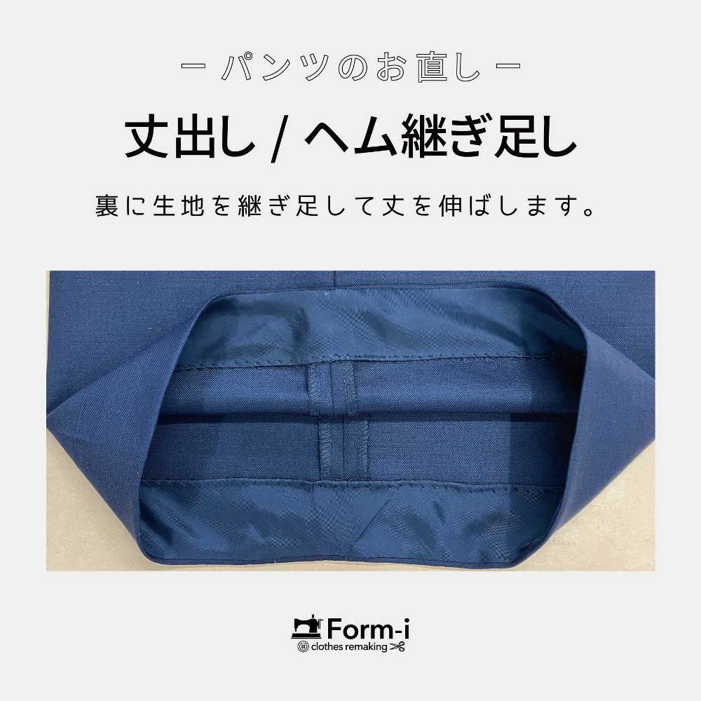 ※元の縫い代だけで丈出しする場合と、裾に別布を継ぎ足して丈を伸ばす方法で料金が異なります。(詳しくはスタッフまで)