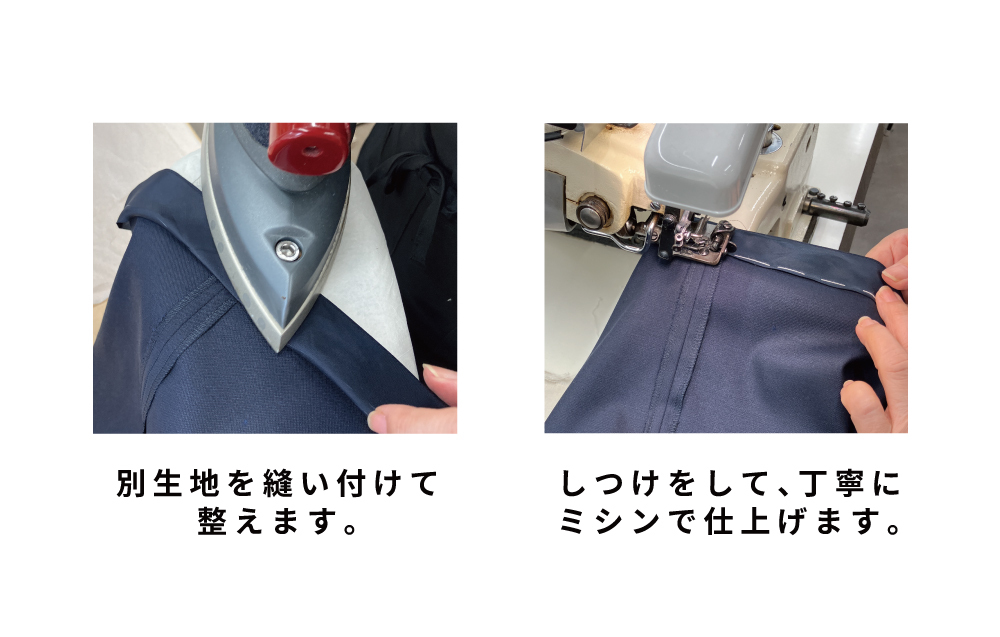 縫い代が足りない場合は、裾に似た色の裏地や布を継ぎ足して仕上げます。