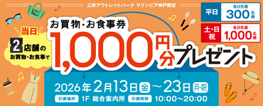 当日2店舗のお買物・お食事で「お買物・お食事券」プレゼント!