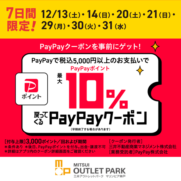 ぜひ、この機会に三井アウトレットパークマリンピア神戸で、『PayPay』を利用しておトクにお買物をお楽しみください✨