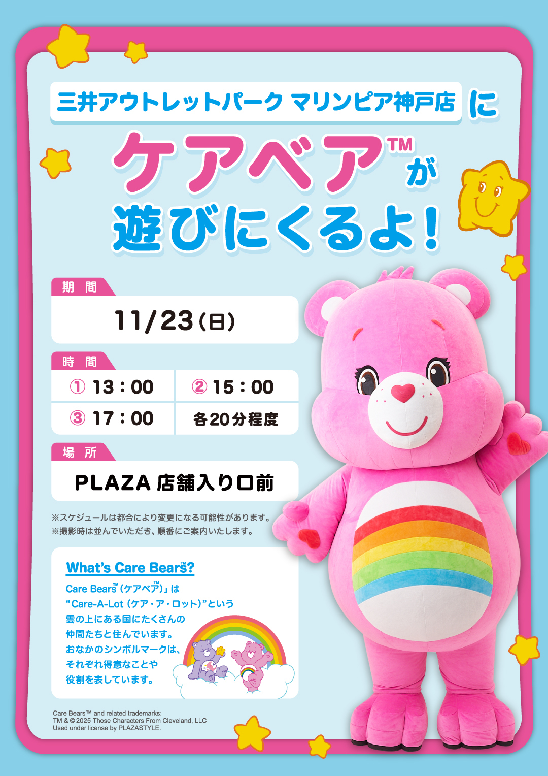 - 【11/23(日・祝)限定】2階PLAZA前に「ケアベア」が遊びにくるよ!
