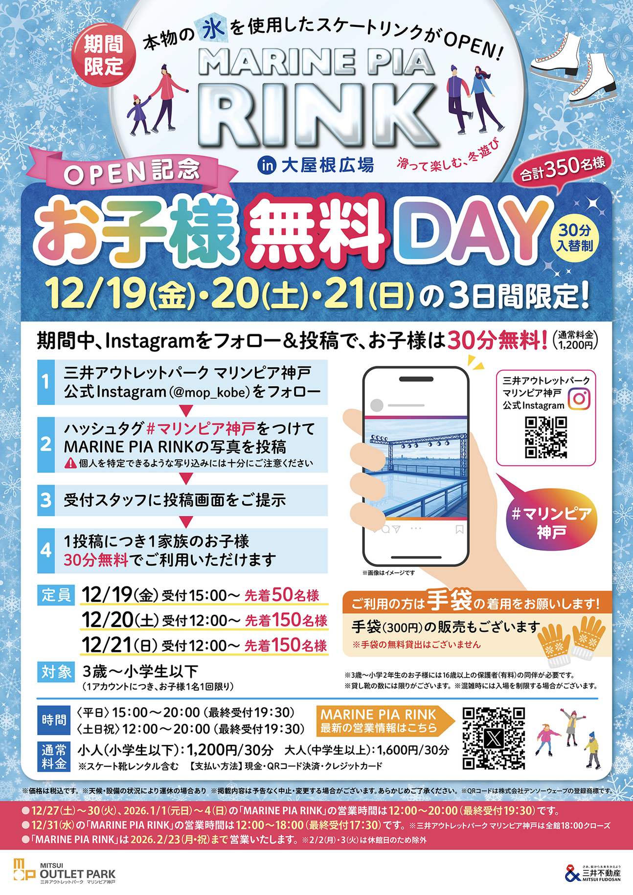 【MARINE PIA RINK】(12/19-21限定) お子様無料DAY!