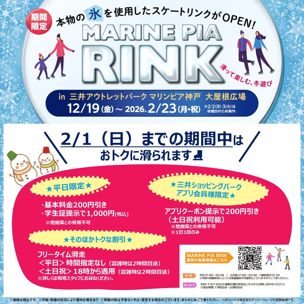 【MARINE PIA RINK】!2/1(日)までの期間限定! おトクに滑られるサービスのご案内♪