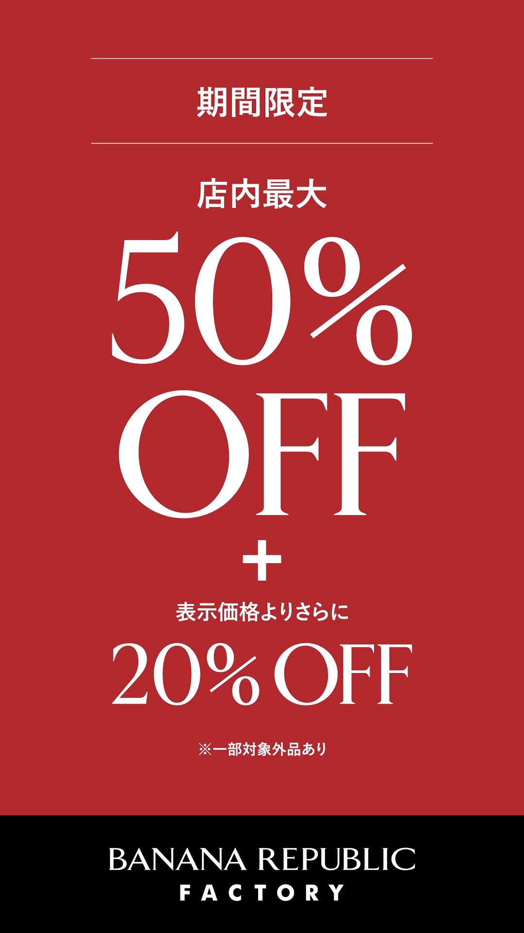 店内最大50%OFFから、さらに20%割引になるイベント開催致します。