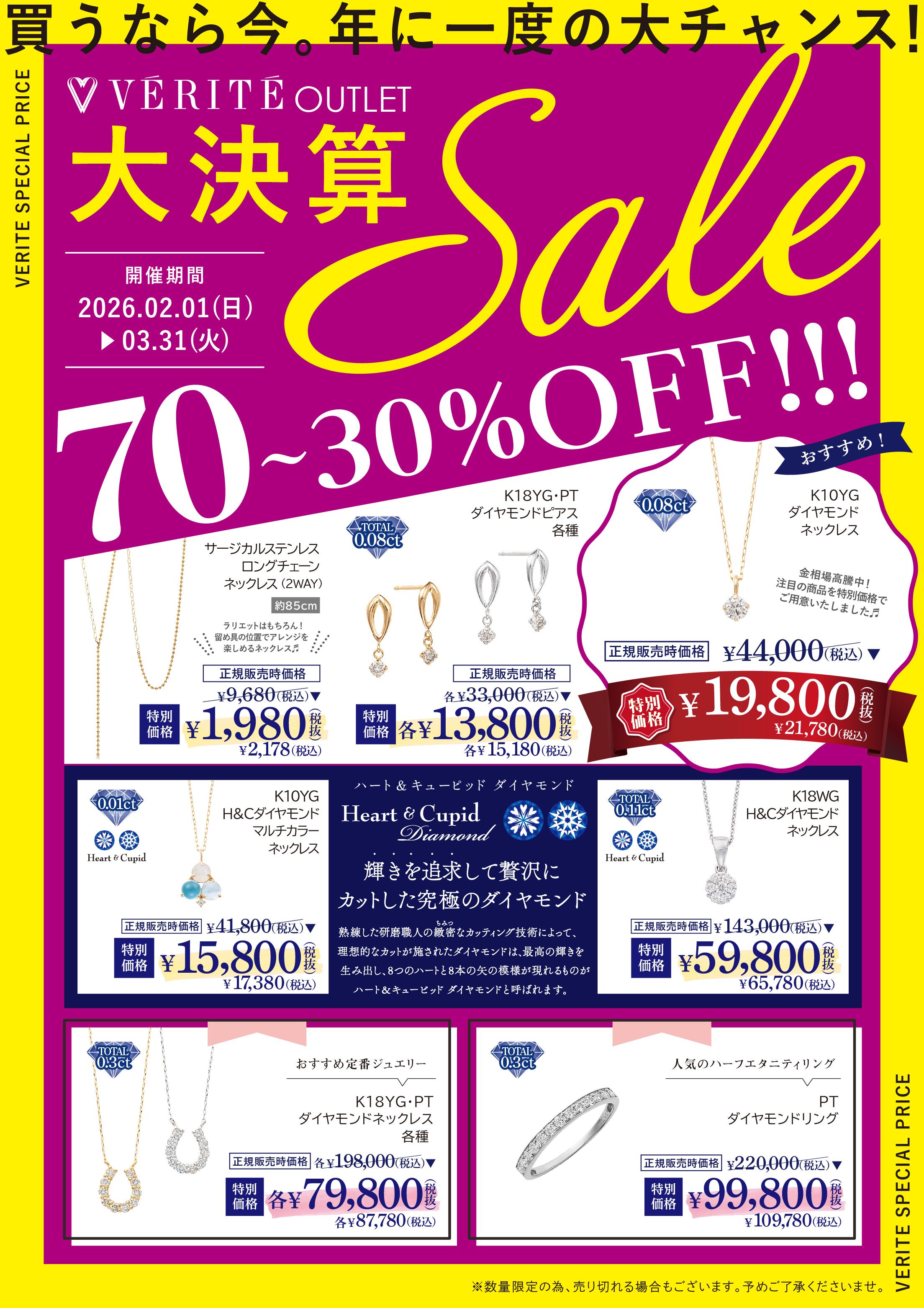 ベリテアウトレット全店では日頃の感謝の気持ちを込めて、年に1度の大決算セールを開催いたします!