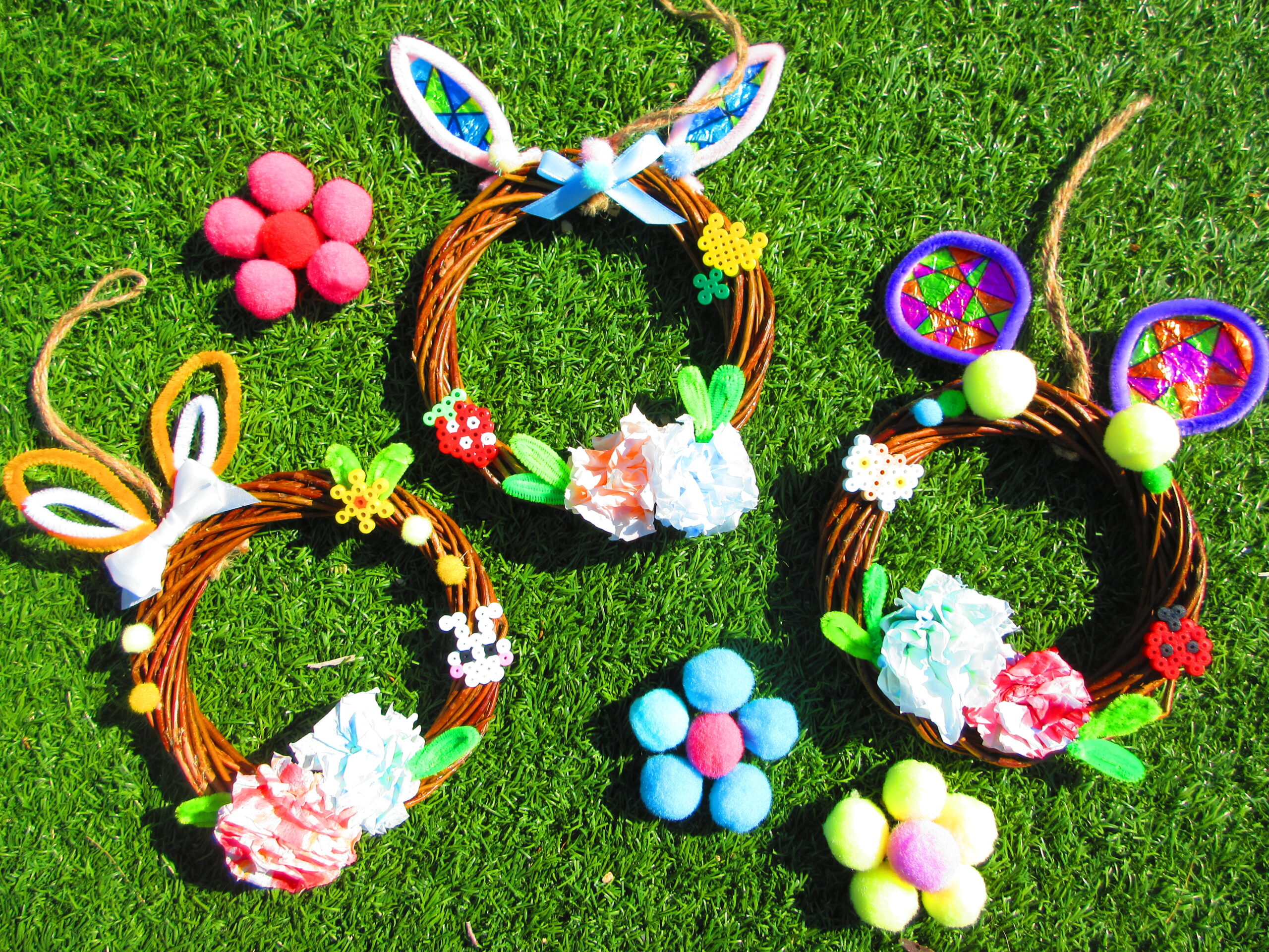 好きなペンで色塗りをし、そこに水やりをすると…色が広がり綺麗なお花の出来上がり♪モールで動物の耳作りや、好きなパーツを選んで春らしいリースを親子で一緒に作りませんか?3歳頃のお子さまから参加でき、おうちのインテリアとしてもおすすめです!