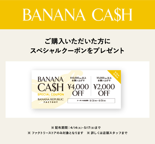 5月から使えるバナナキャッシュスペシャルクーポンをプレゼント!
