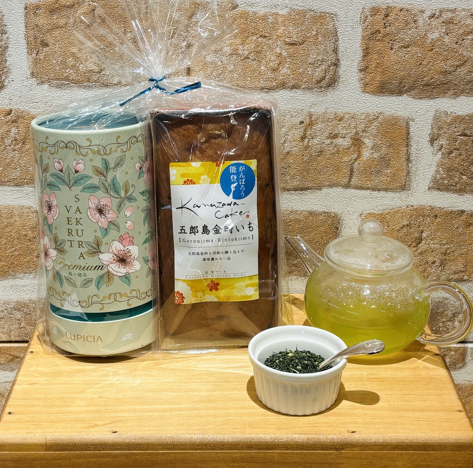 ほうじ茶や金時いもなど、和の味わいが楽しめるパウンドケーキと、緑茶のお得なセットはいかがでしょうか。