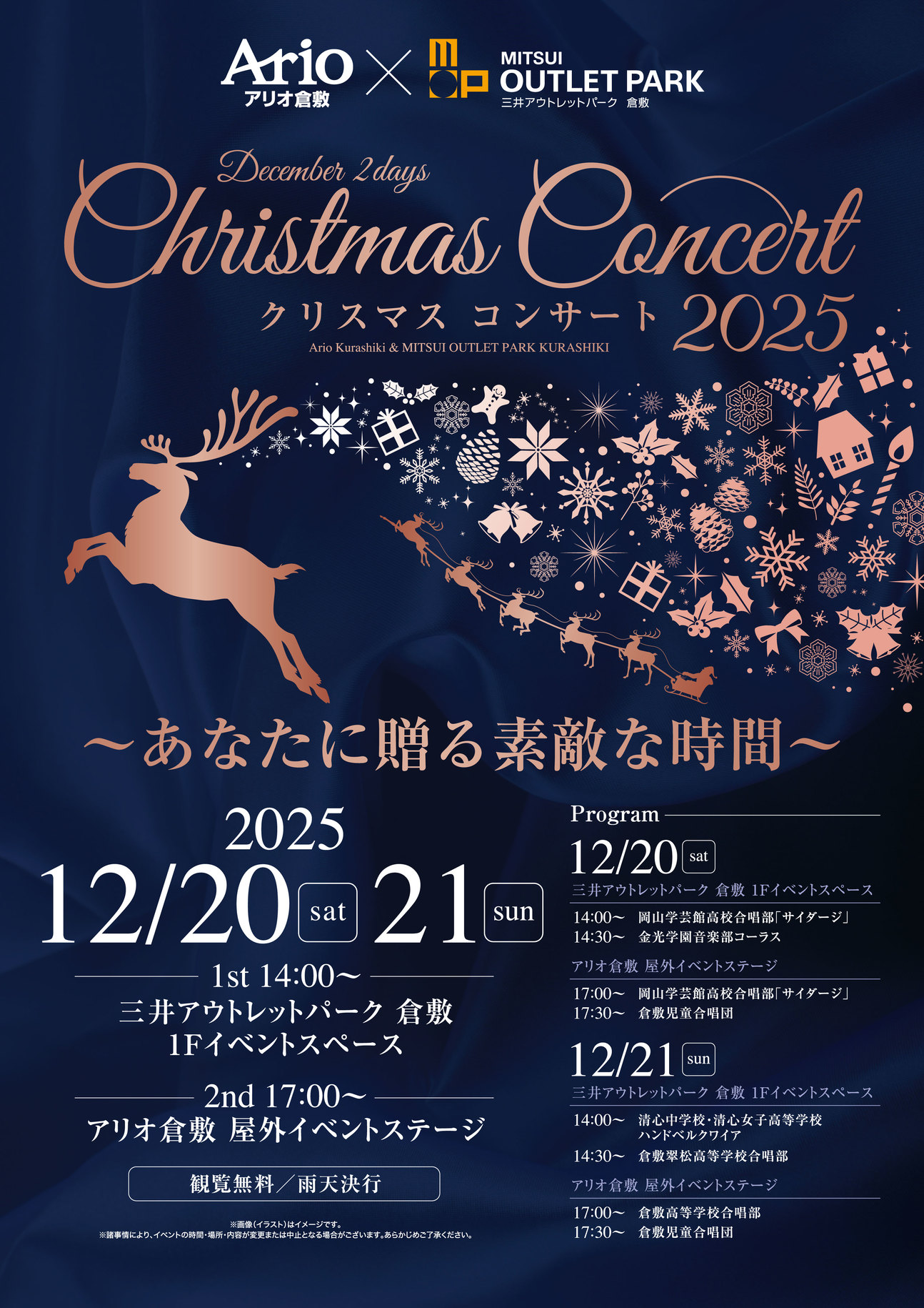 岡山県内の高校や児童合唱団のみなさまに、クリスマスにぴったりの楽曲を披露いただきます。