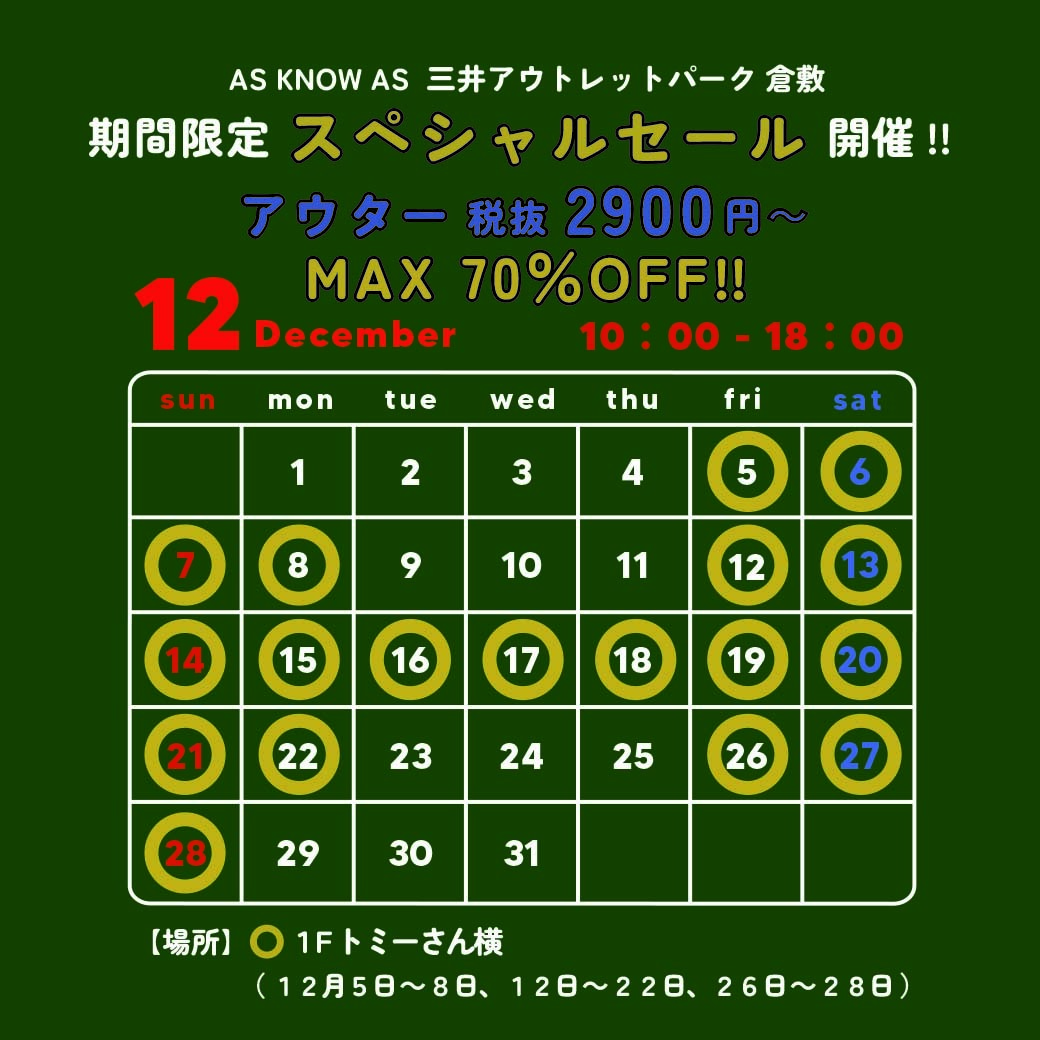 - AS KNOW AS 催事開催!!