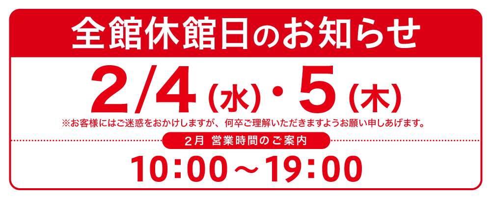 2026年2月 休館日・営業時間変更のお知らせ