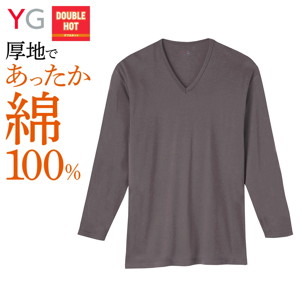 YG DOUBLEHOT 綿100%9分袖Vネック