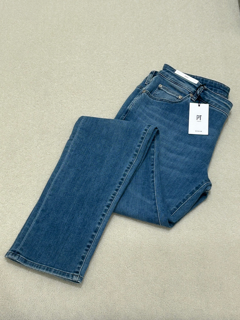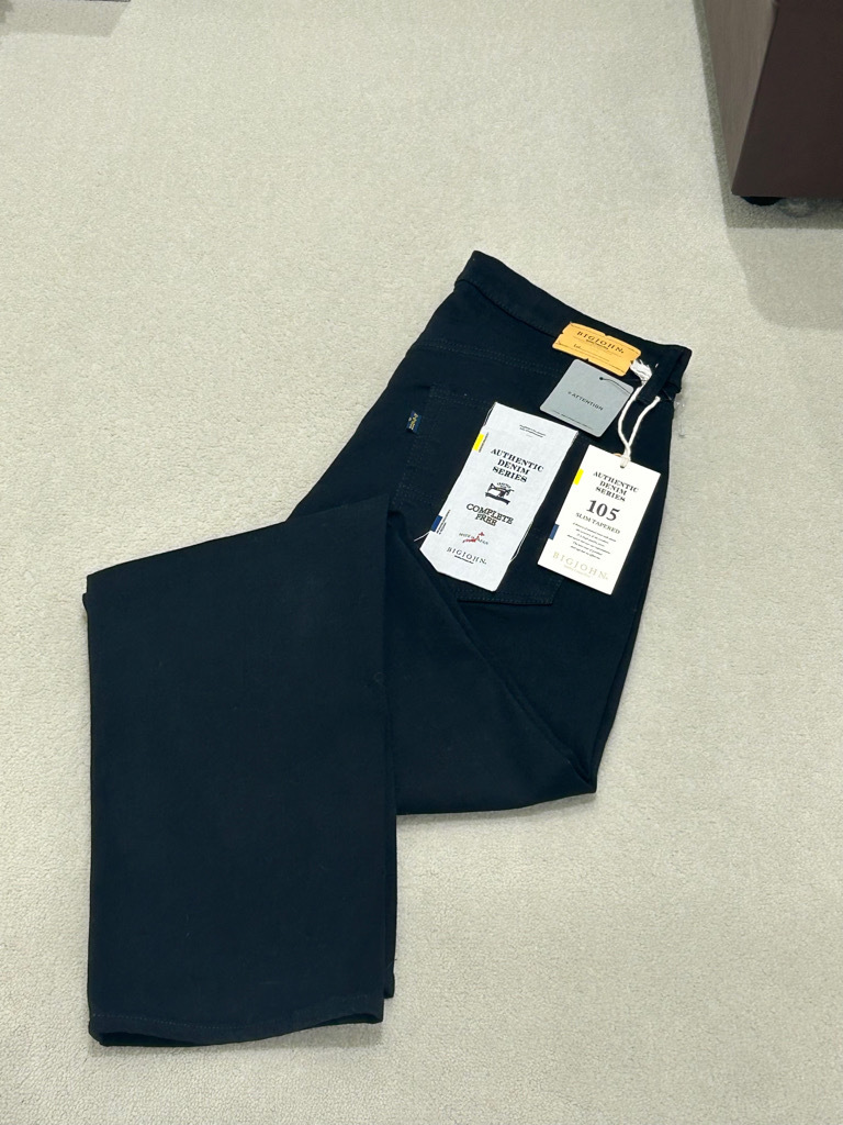 3枚目はイタリアメーカーのデニムパンツ。テーバードが効いた定評のある美しいシルエットに、ストレッチ性を備え動きやすい履き心地が魅力。色落ち感のある色合いが春の装いにピッタリです。