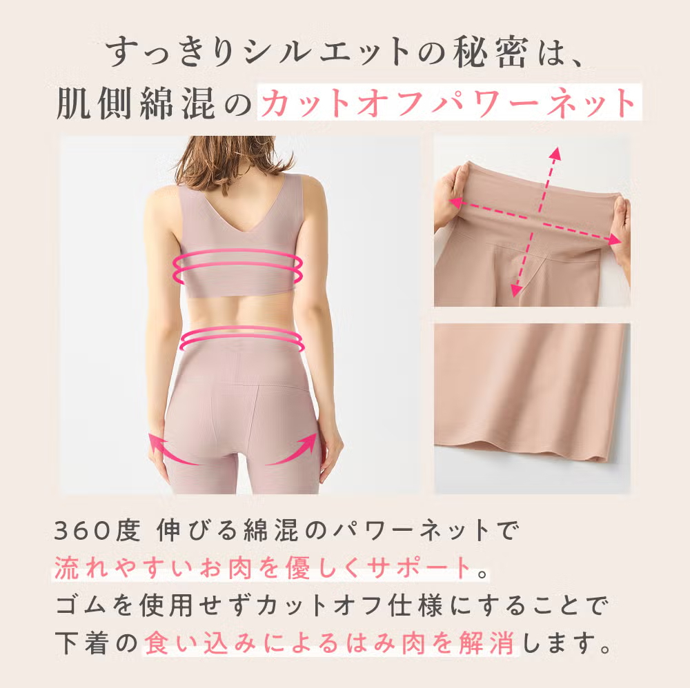スッキリシルエットの秘密は肌側綿混のカットオフパワーネット