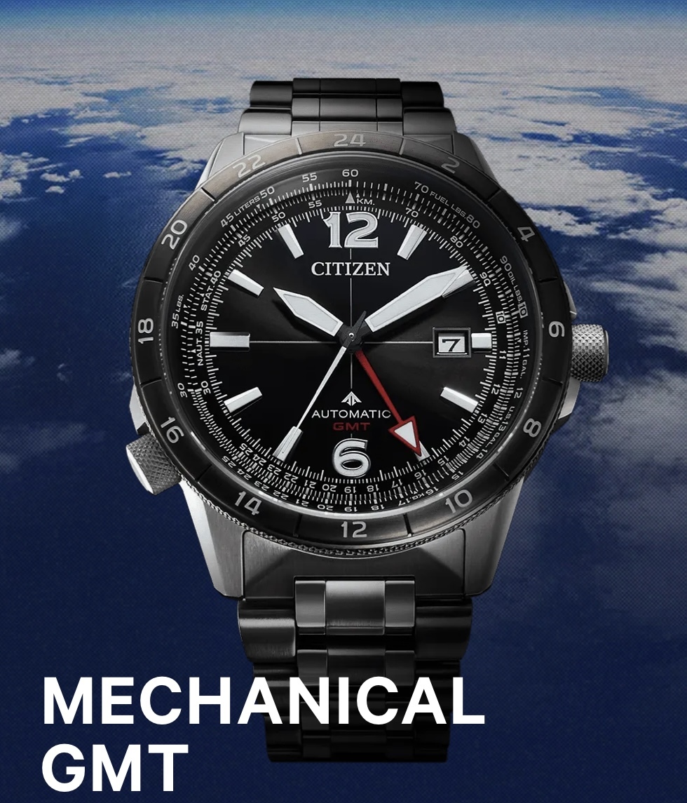 陸・空・海 3つのカテゴリーで展開しているCITIZENのスポーツライン「プロマスター」のSKYシリーズから、ブランド初となるメカニカルGMT搭載のパイロットウォッチのご紹介です。
