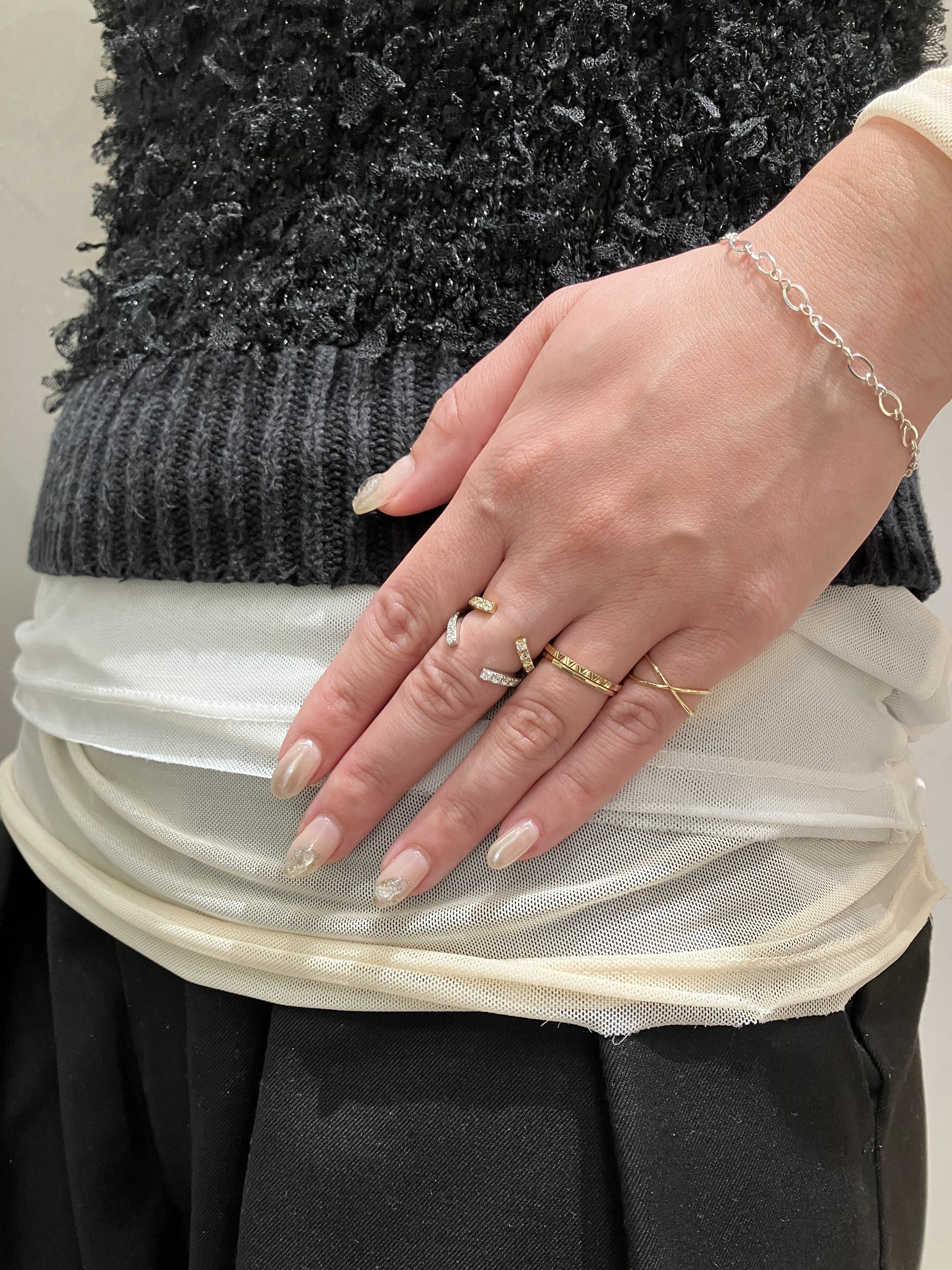 Joueteではリングを3本、横並びでつけるコーディネートを「ルリアンコーデ」と呼んでいます。