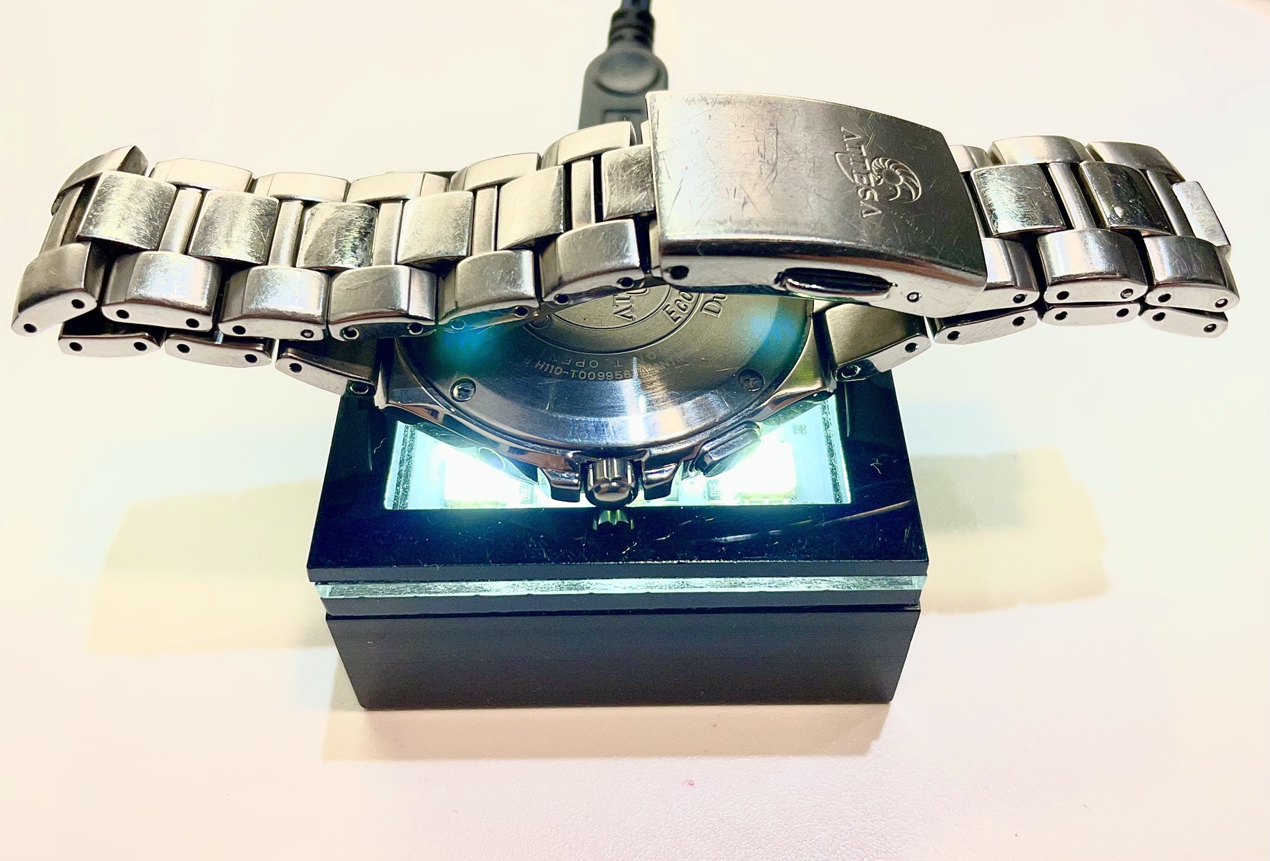太陽光と同じ10万ルクスのLED急速充電器を使用して、お客様のエコ・ドライブ時計にしっかり光を充ててチャージいたします。