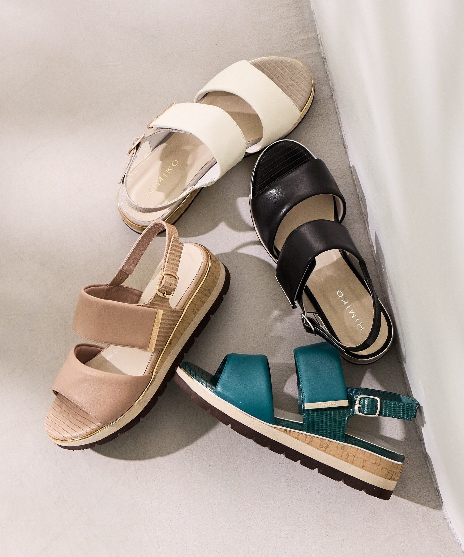リザード型押しレザーのアクセントと、HIMIKOオリジナルのメタルパーツの品の良さで、大人が履きやすいスポーツサンダル。