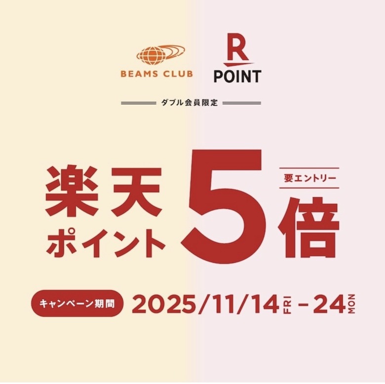 【W会員限定】BEAMS CLUB × 楽天ポイントカード提示で楽天ポイント5倍!