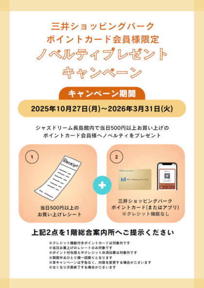 - 【三井ショッピングパーク現金ポイント会員様限定ノベルティプレゼント!】