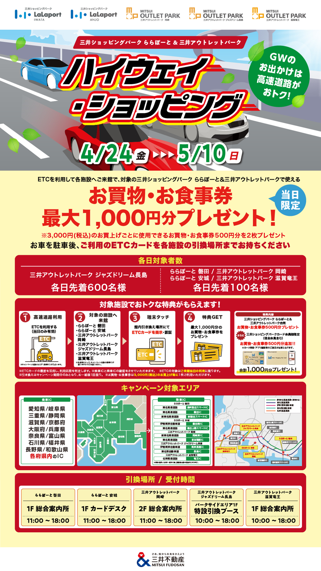 - GWは高速道路でおトクにショッピング! 「ハイウェイショッピングキャンペーン」開催!