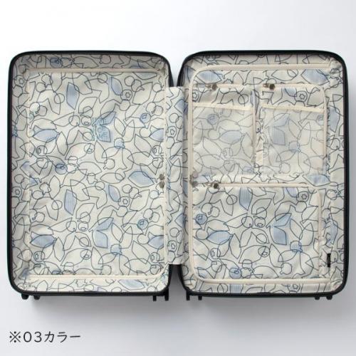 ハントらしい「なみなみななめリブ」のボディシェルに、表面は傷が目立ちにくいマットな質感。どんなコーディネートにも合わせやすい優しい色合いのカラー展開と、可愛い内装デザインが旅の準備から楽しい気分を盛り上げます。内装と同柄の便利なミニバッグ付き。