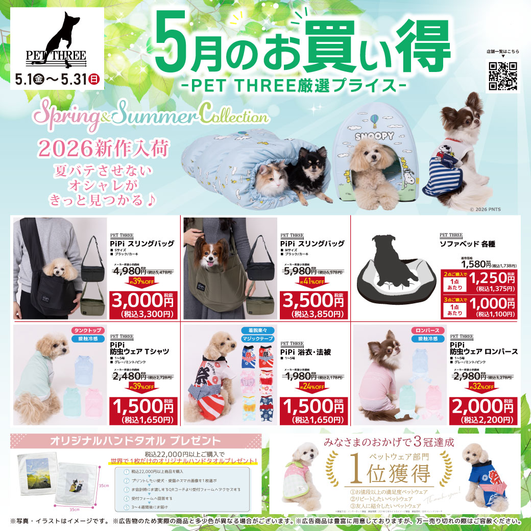 5月のお買い得ーPET THREE厳選プライスー