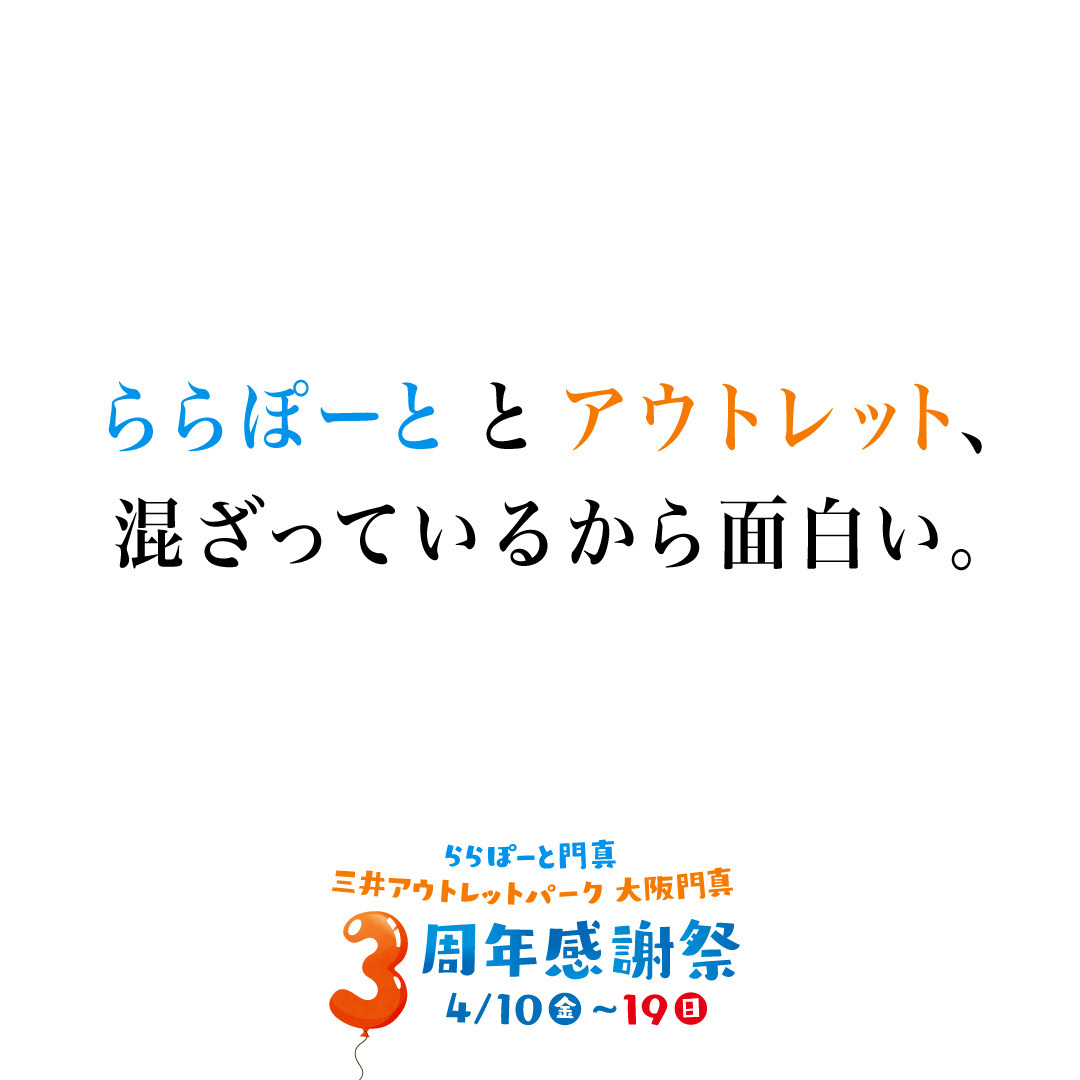 ららぽーと門真・三井アウトレットパーク 大阪門真が4/17(金)に開業3周年を迎えることを記念して、