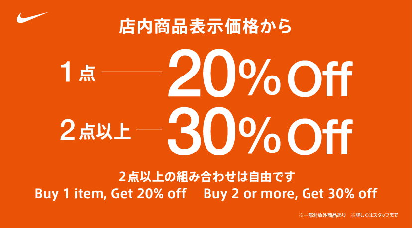 1点20%off、2点以上30%off Sale