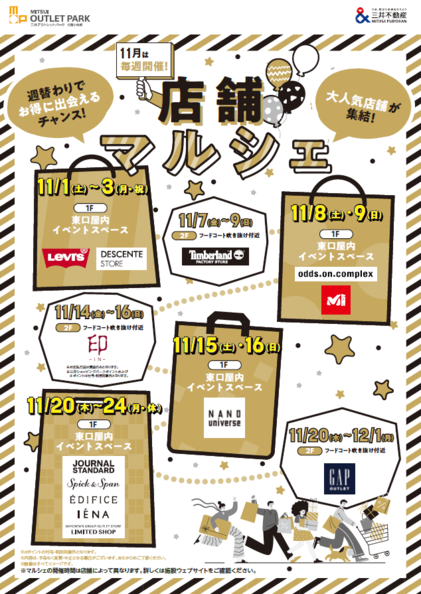 ①三井アウトレットパーク 北陸小矢部内のアパレル店舗限定お買物券500円分